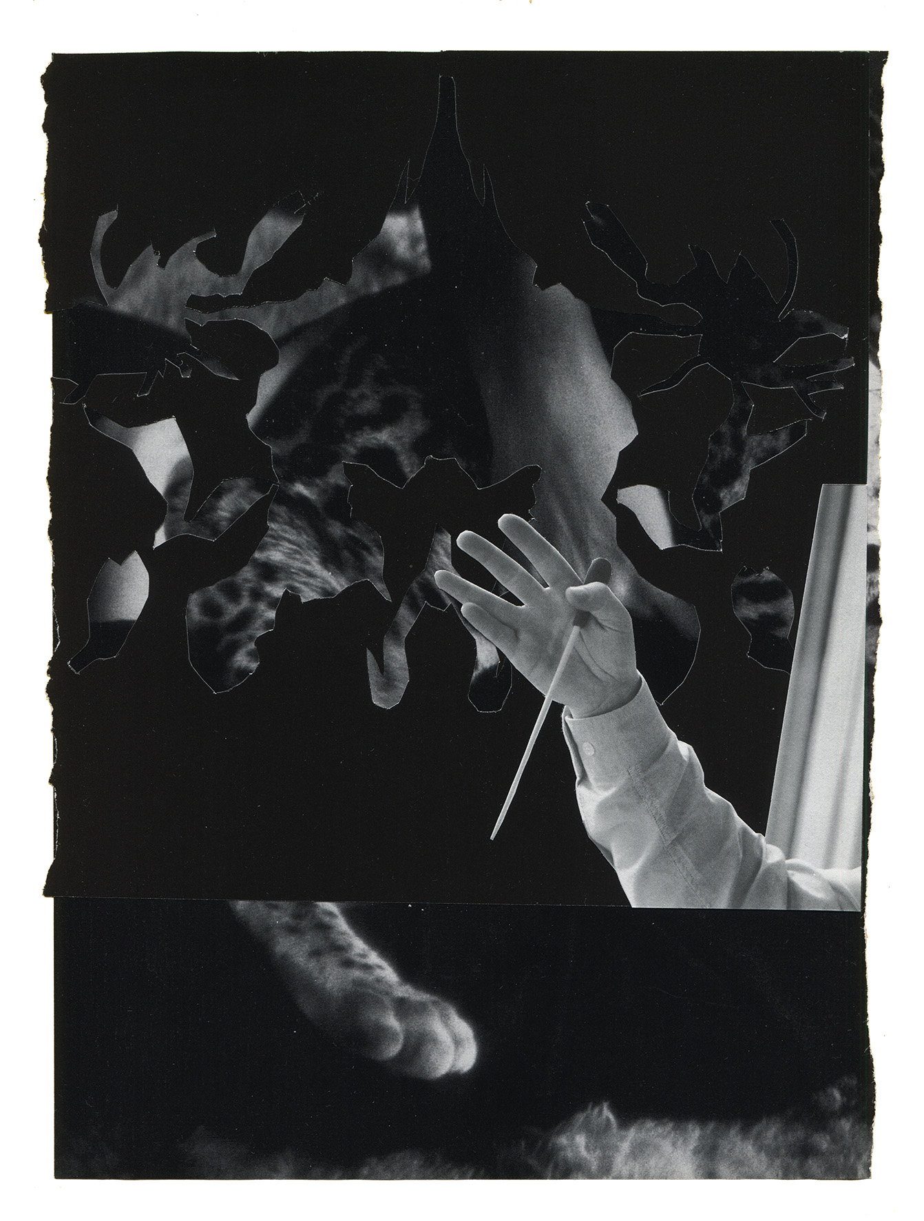 The workspace of Barbara Breitenfellner is host to an elaborate rigging of books, boxes and trays that more closely resembles a chemistry lab than a cutting table. A long worktable lines one blue wall of her home-studio, whereon clippings brew in piles, paper churns in various stages of doing and undoing, and cans of spray glue await their day. Wallabies and bombshells rotate in and out of circulation, off the shelf, out of the book, off the page, into the hash, out of the hash, then either onto the page, into the frame and back onto the wall, or into a box for another chance at reincarnation. Observing the marked precision in Breitenfellner's collage work–a microscopic view of strand of hair perfectly parallels the leg of the owl in flight it overlays–it is surprising to learn that thematic calculation ends after her selection of source materials, that firm intent it is absent during the assembly of her collages: My collages spring from the threatening, erotic and illogical universe of dreams, there images extinguish themselves, leaving uncertain traces in our memory. Through the overprinting, cutting-out, overturning and adjoining of images I play, seemingly uncontrolled, with the circumstances of the unconscious. The particularly compelling compositions that develop through this process simply cluster about me, almost taking me by surprise. It's as if someone else had made them. Those are my best works. (Elizabeth Pusack)