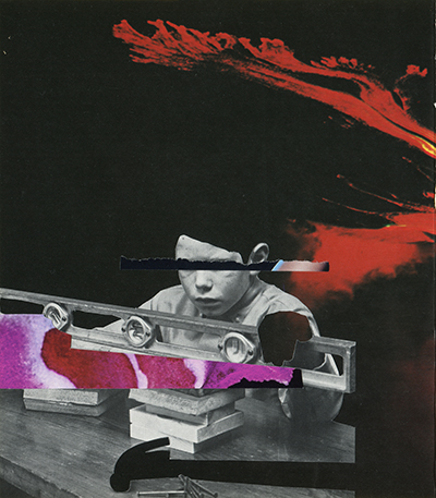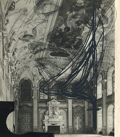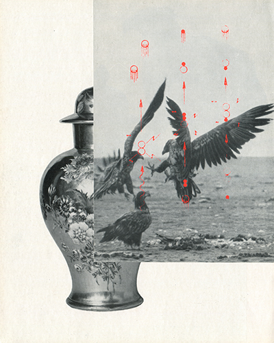 »The workspace of Austrian-born Berliner, collagist and installation artist Barbara Breitenfellner is host to an elaborate rigging of books, boxes and trays that more closely resembles a chemistry lab than a cutting table. A long worktable lines one blue wall of her home-studio, whereon clippings brew in piles, paper churns in various stages of doing and undoing, and cans of spray glue await their day. Wallabies and bombshells rotate in and out of circulation, off the shelf, out of the book, off the page, into the hash, out of the hash, then either onto the page, into the frame and back onto the wall, or into a box for another chance at reincarnation.«